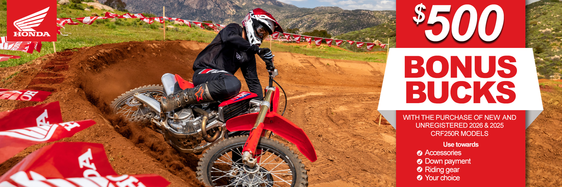 Fixed APR starting at 3.99% on 2025 CRF250R